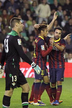 Así y todo, lo que en la temporada pasada parecía una complicación fue un estímulo: Messi abandonó el campo y el Barcelona ajustó sus tuercas para abrir camino a la victoria. En apenas dos minutos, Neymar y Pedro consiguieron una ventaja de dos goles para los visitantes, suficiente como para sepultar las esperanzas del conjunto verdiblanco.
